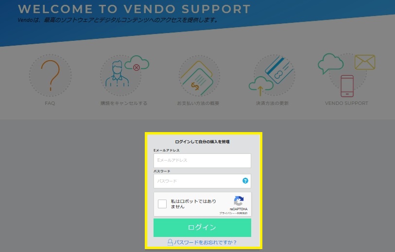 お問い合わせページからvendoのサポートページに移動
